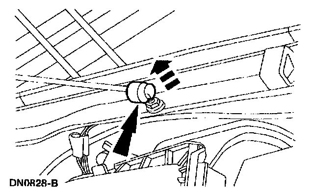 12. Remove the hood support bolt.