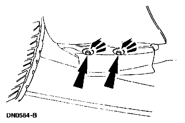 7. Remove the bolts securing the lower rear of the front fender.