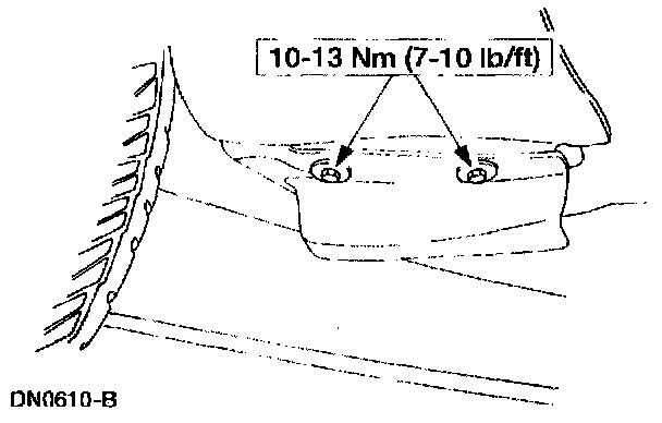 8. Remove the fender-to-radiator grille opening support retaining bolts.