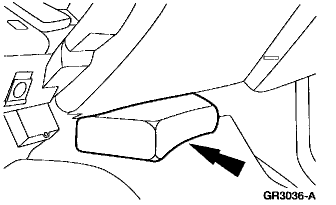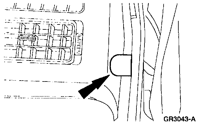 ^ Engage the floor console wiring harness locator and relocate the harness under the carpet and heat duct.