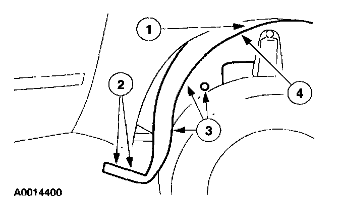 14. Position the RH front fender splash shield away from the dash panel.