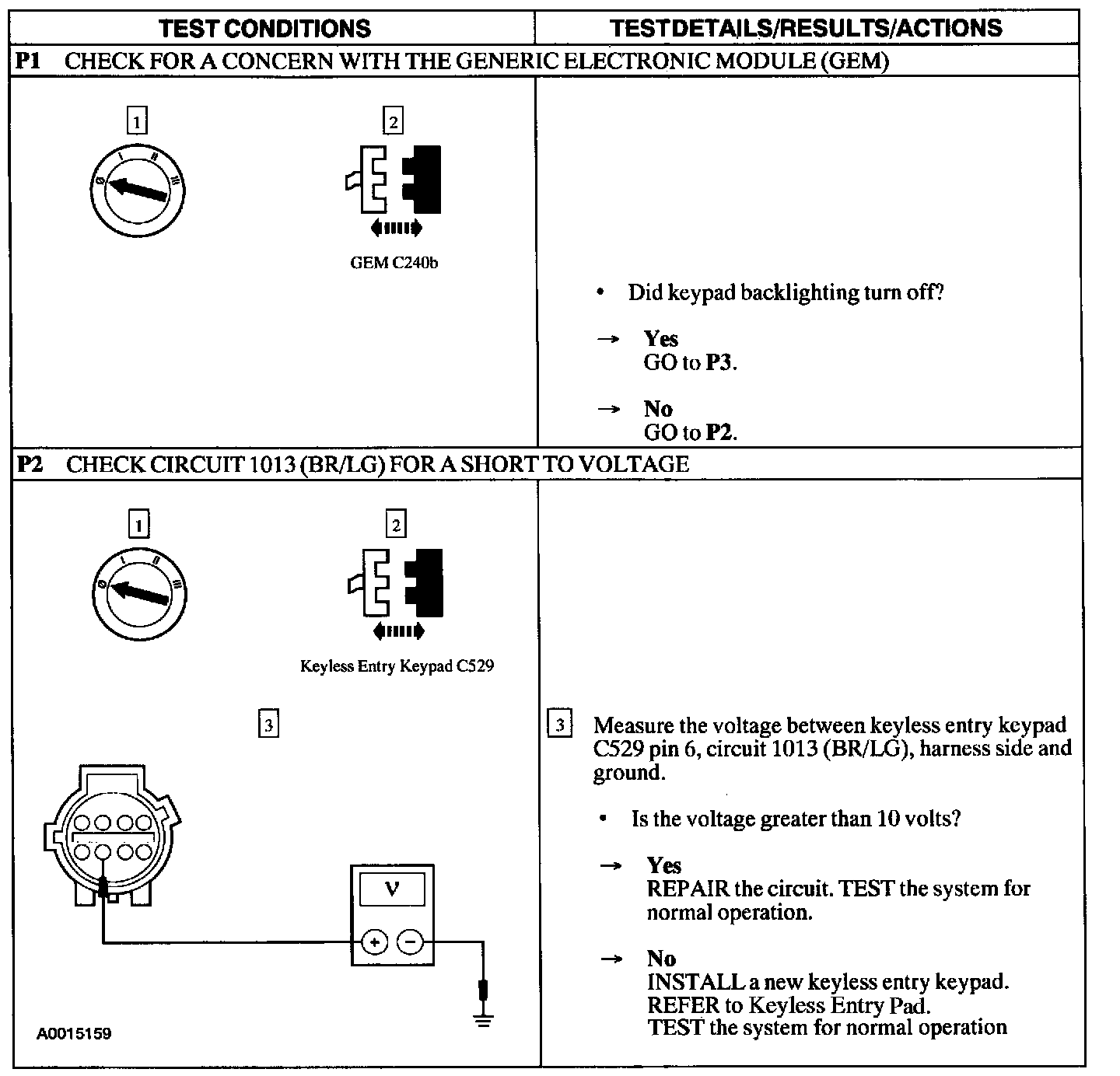 Test P: Keyless Entry Keypad Illumination Is On Continuously