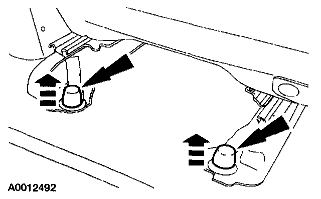 1 Remove the three front seat riser support-to-floorpan bolts.