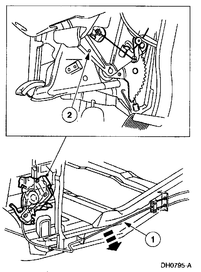 5. Disconnect the parking brake release handle cable from the parking brake control.