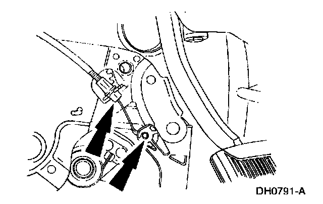 11. Disconnect the front parking brake cable and conduit from the parking brake control.