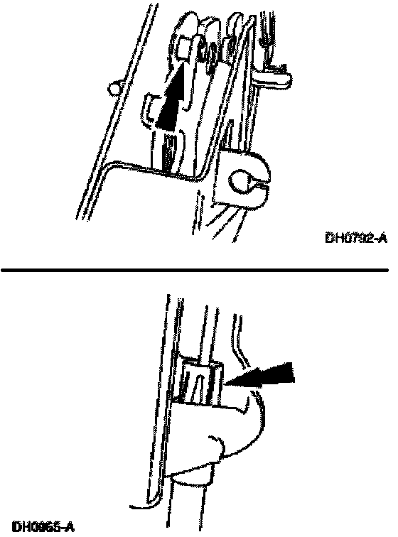 5. Disconnect the front parking brake cable and conduit from the parking brake control.
