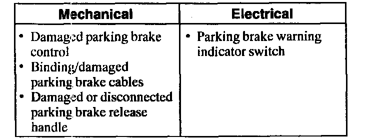 1. Verily the customer's concern by operating the parking brake system to duplicate the condition.Visual inspection Chart: