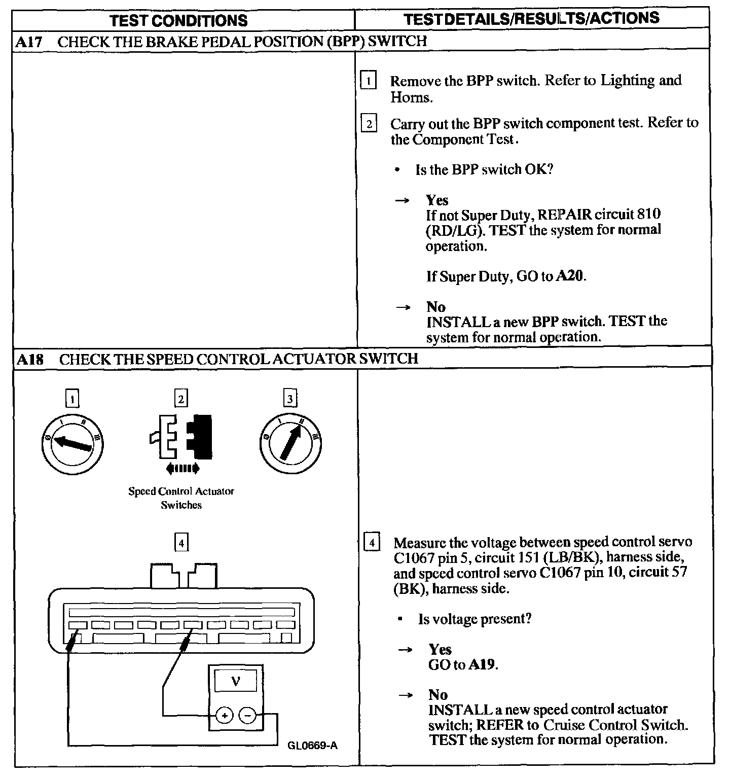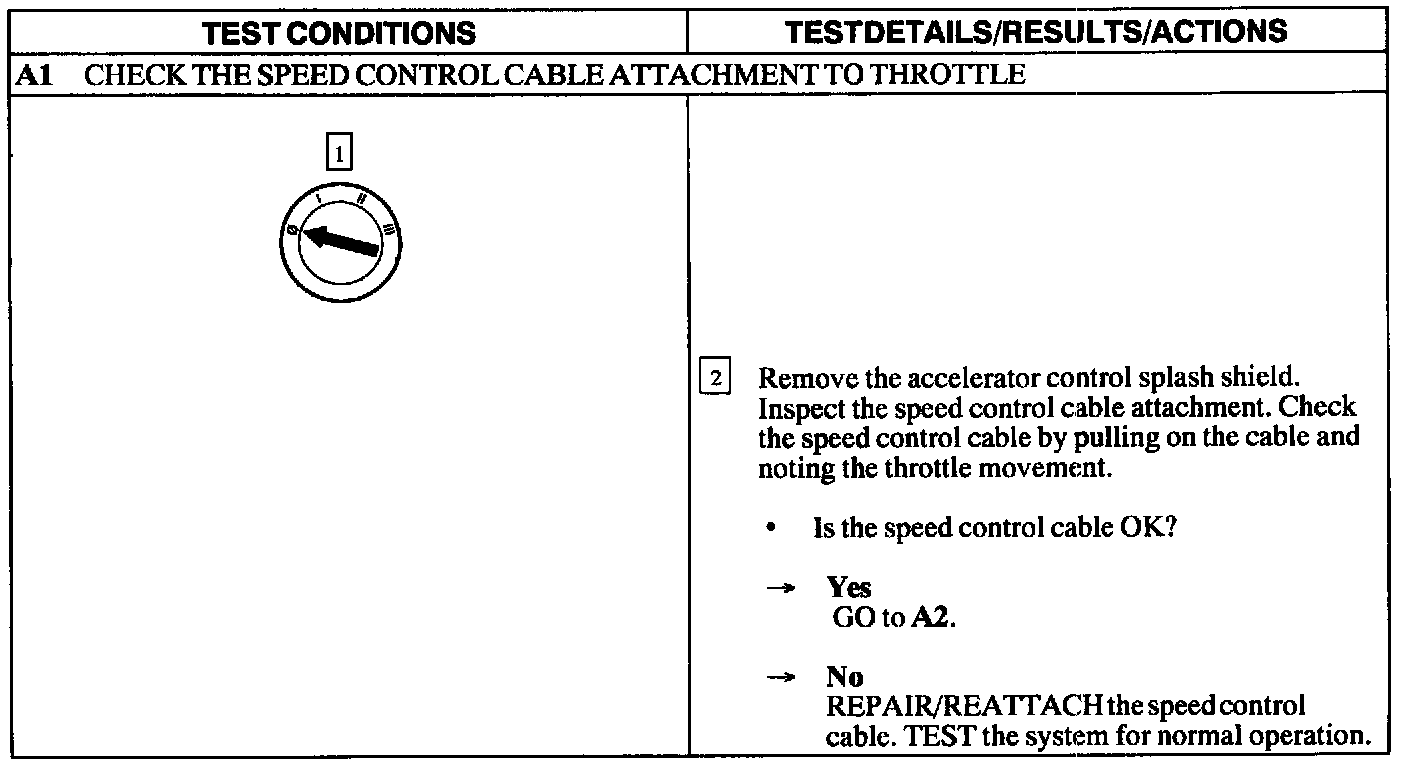 Test A: Speed Control Is Inoperative