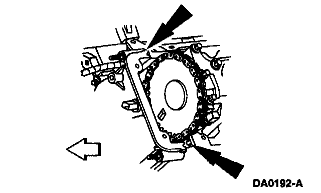 1. Note: If not secured within 4 minutes, the sealant must be removed and the sealing area cleaned with Metal Surface Cleaner F4AZ-19A536-RA or equivalent meeting Ford specification WSE-M513392-A. Allow to dry until there is no sign of wetness, or 4 minutes, whichever is longer. Failure to follow this procedure can cause future oil leakage.