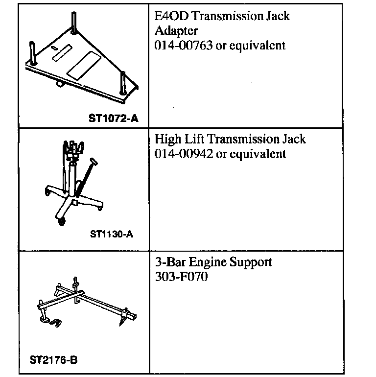 8. Remove the High Lift Transmission Jack and the E40D Transmission Jack Adapter from the transmission.