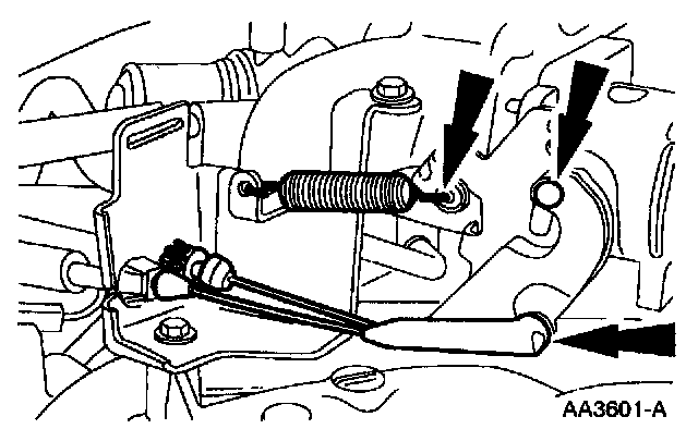37. Connect the accelerator and speed control cables and return spring.