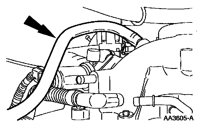 7. Disconnect the PCV vacuum and coolant hoses.