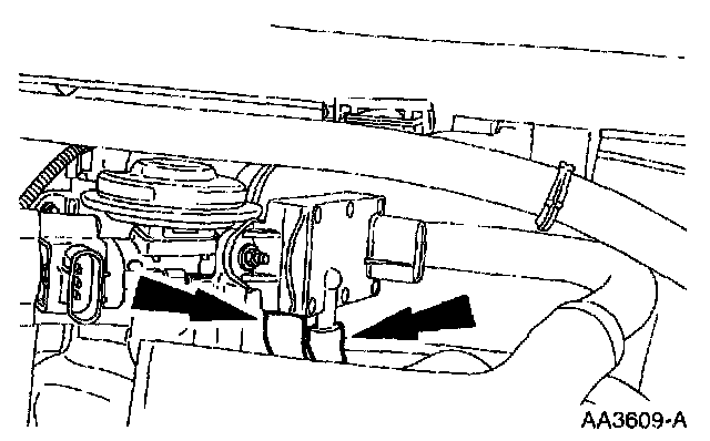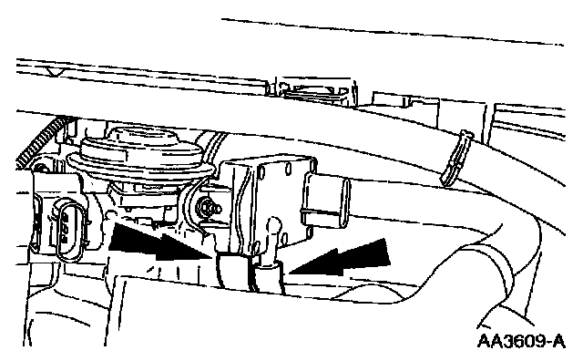10. Disconnect the idle air control motor electrical connector and the bypass hose.