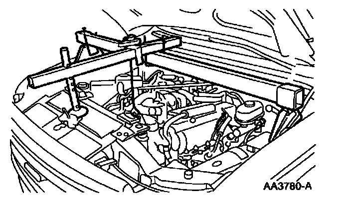 15. Using a floor crane, remove the 3-Bar Engine Support.