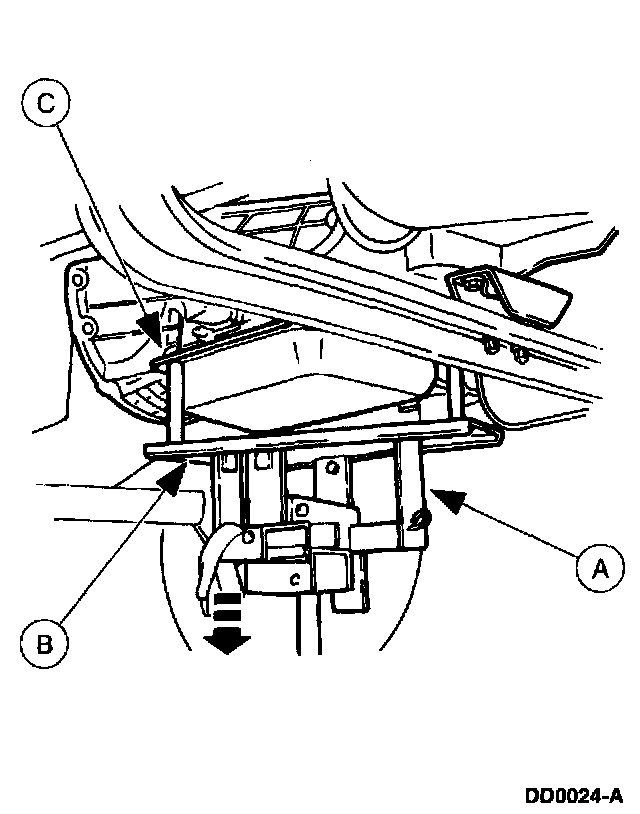 Support the (C) transmission with a transmission jack (A) and the (B) jack adapter.