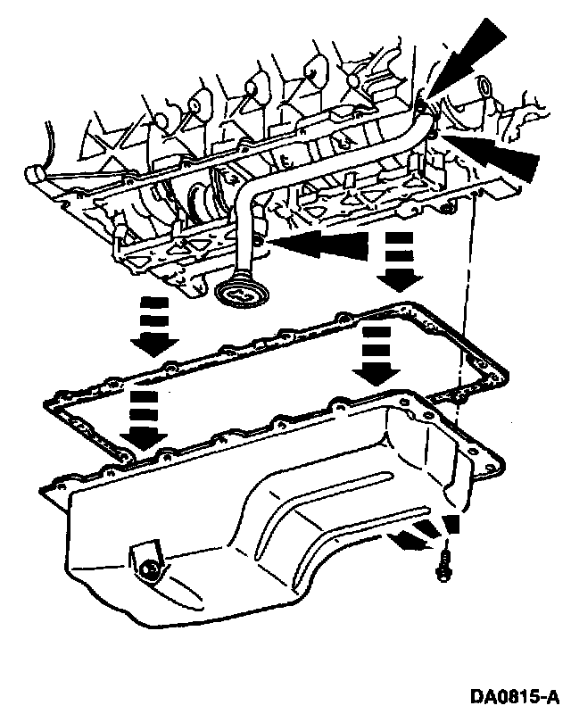 1. Note: The oil pump screen cover and tube must be in the oil pan when the oil pan is positioned in the vehicle.