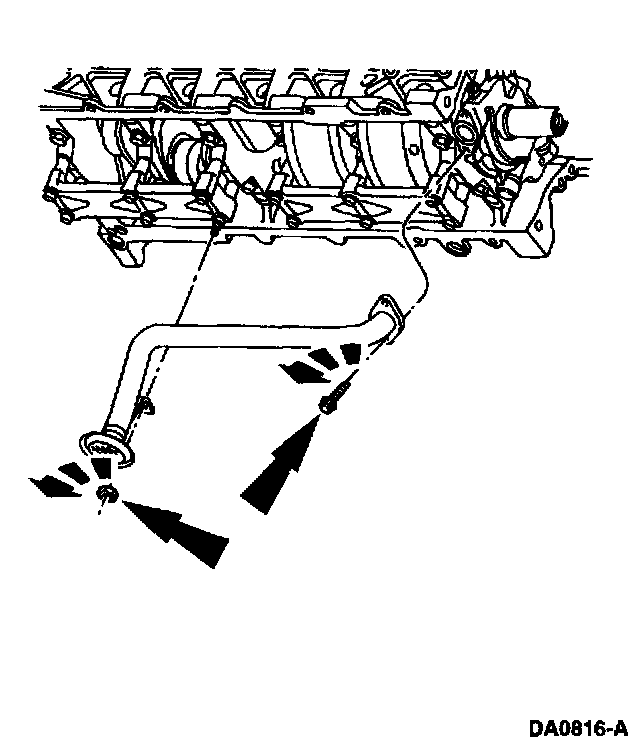 ^ Position the oil pump screen cover and tube on the engine.