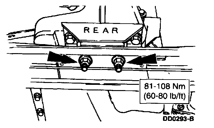 6. Install the transmission mount nuts.