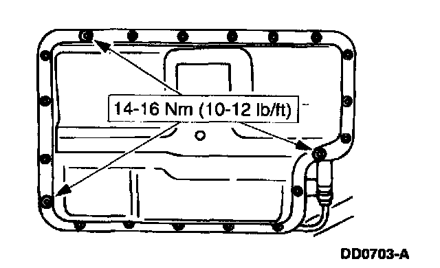3. Note: If the oil pan is not secured within 4 minutes, the sealant must be removed and the sealing area cleaned with Metal Surface Cleaner F4AZ-19A536-RA or equivalent meeting Ford specification WSE-M5B392-A. Allow to dry until there is no sign of wetness, or 4 minutes, whichever is longer. Failure to follow this procedure can cause future oil leakage.