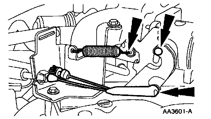 5. Disconnect the accelerator and speed control cables and return spring.