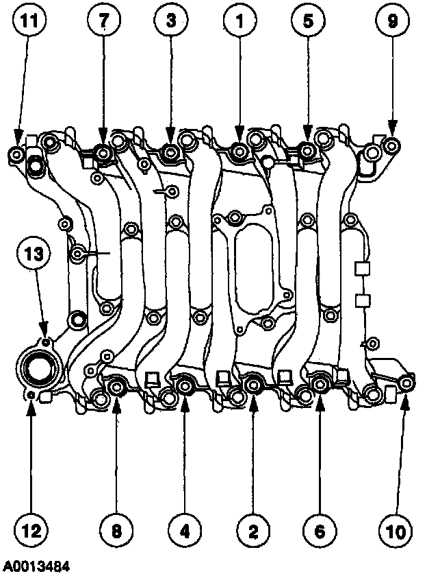 1. Position the lower intake manifold to the upper intake manifold and loosely install the 10 bolts.