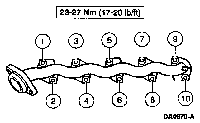 3. Remove the 10 nuts and the exhaust manifold and exhaust manifold gasket. Discard the exhaust manifold gasket.