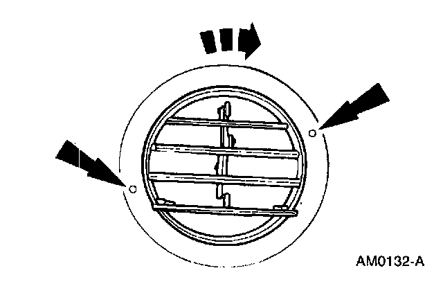 2. Rotate the A/C register with the removal tool to align the retaining ears with the clearance openings and remove the A/C register.