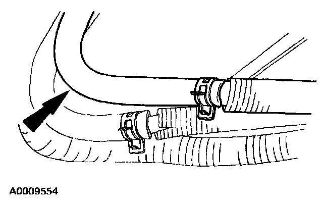 1. Install the rear auxiliary heater outlet line and connect it to the auxiliary heater outlet hose.