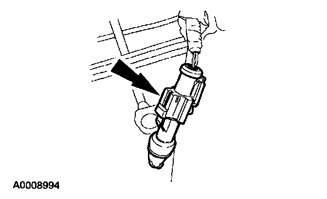 7. At the rear of the vehicle, disconnect the evaporator outlet line spring lock coupling.