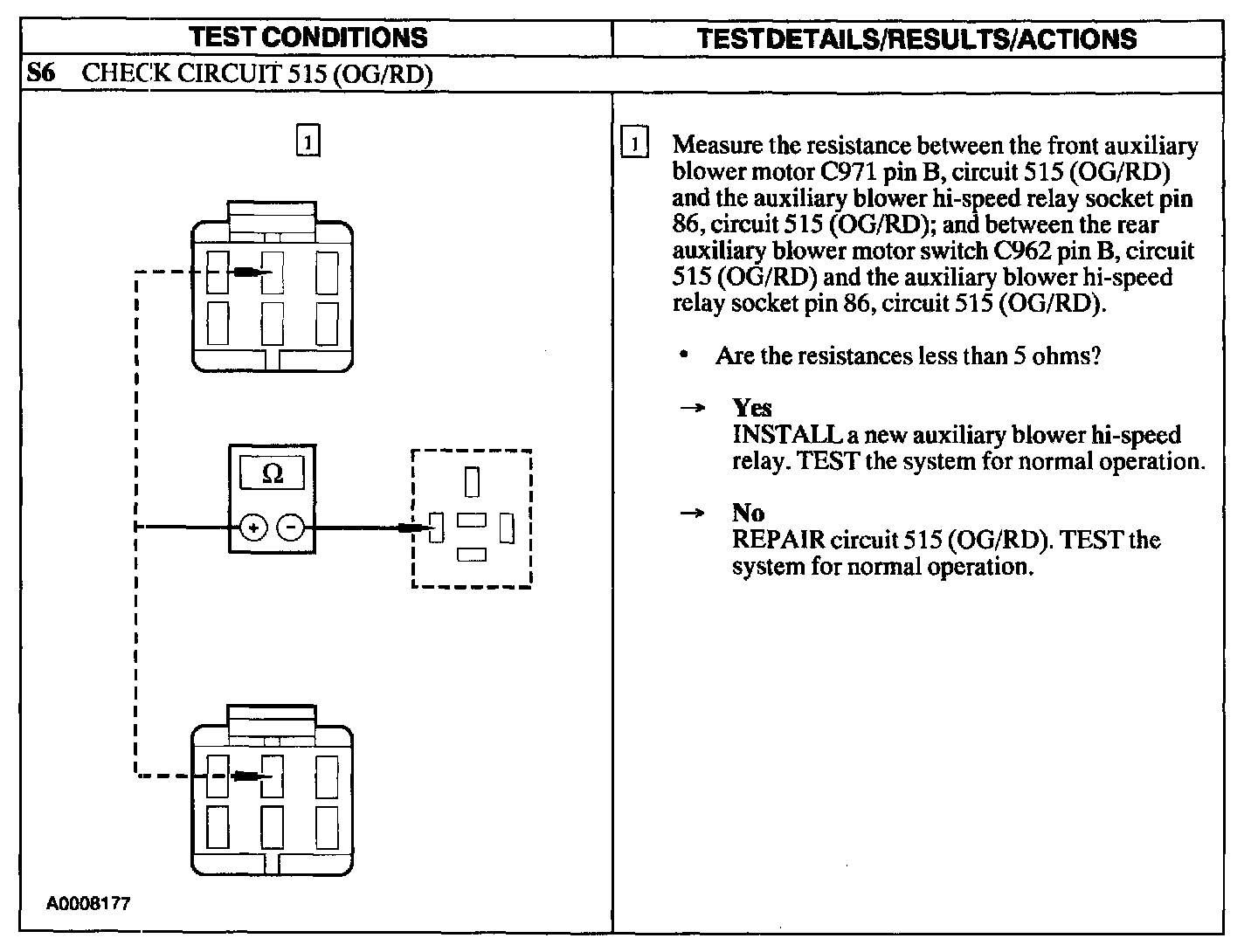 Test S: The Front/Rear Auxiliary Blower Motor Switch Does Not Operate In HI
