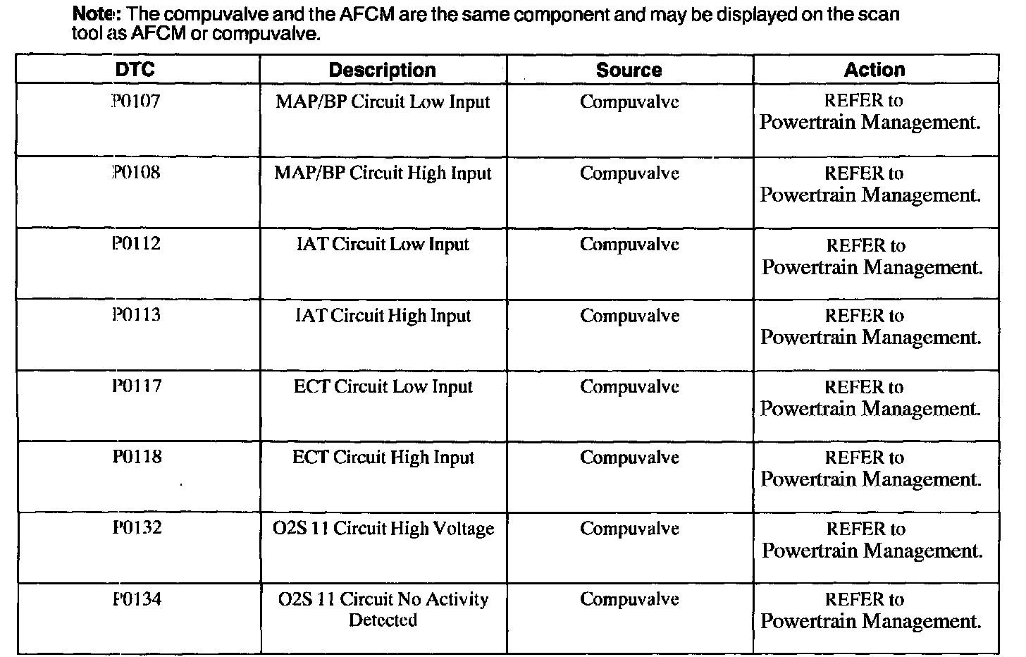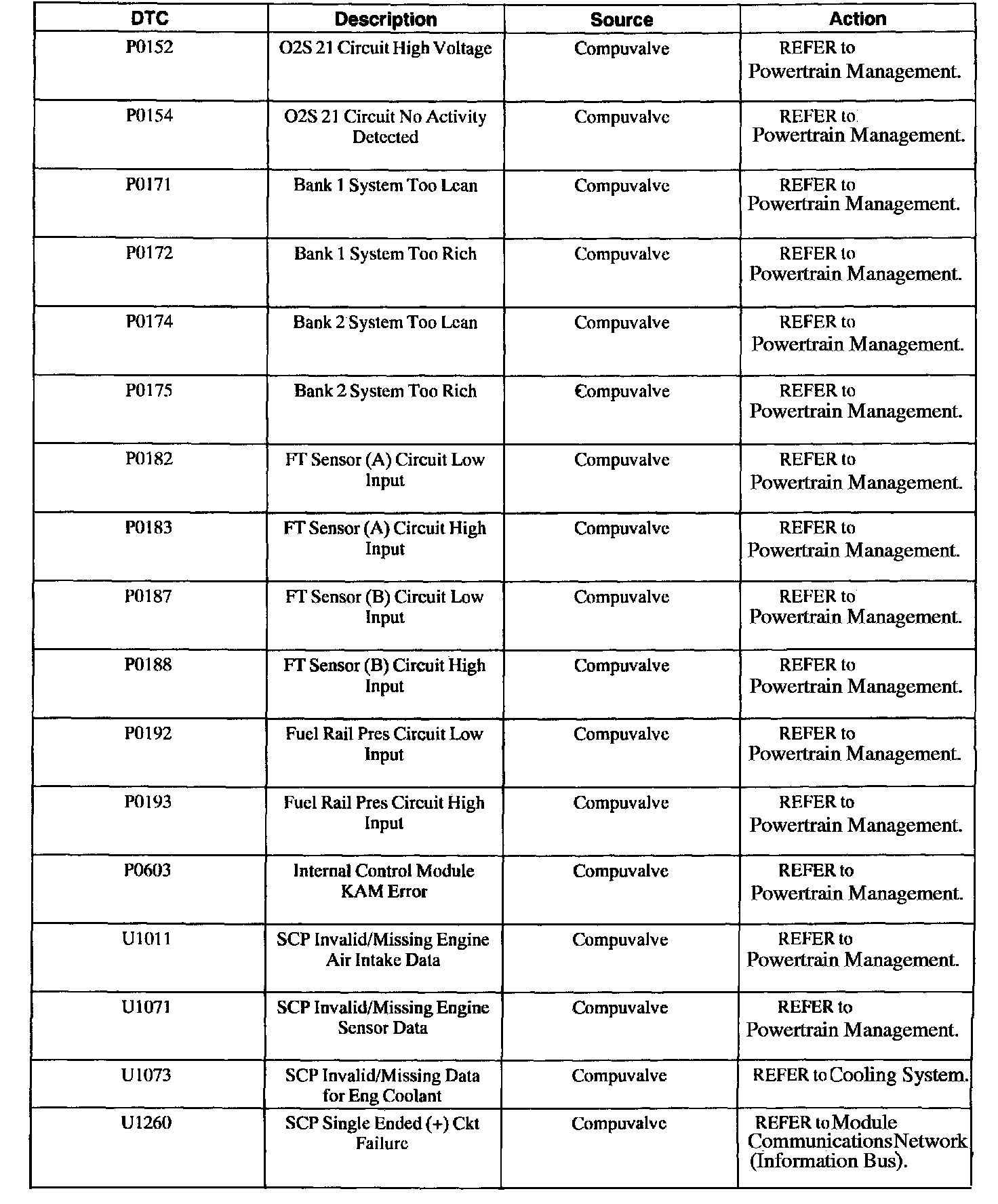 Compuvalve Diagnostic Trouble Code (DTC) Index