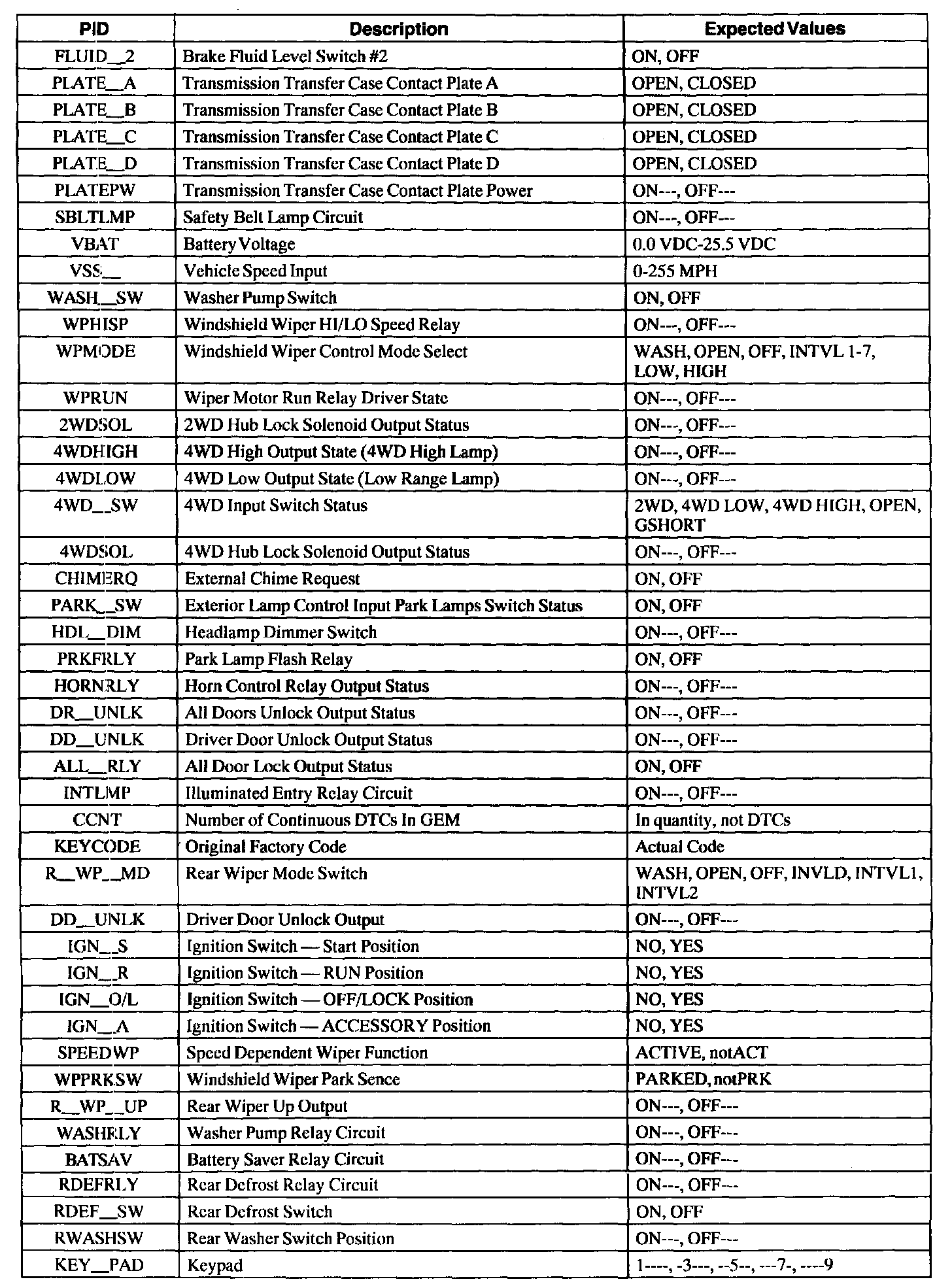 GEM Parameter Identification (PID) Index