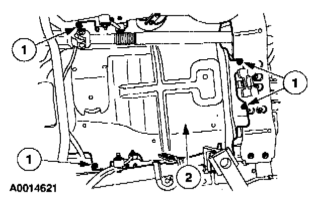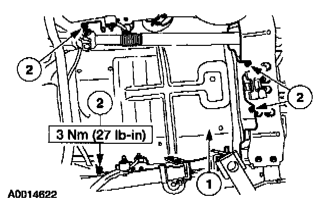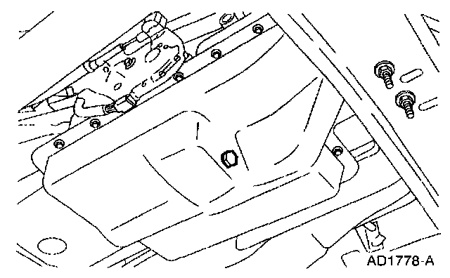 3. Lower the front of the fluid pan and allow the fluid to drain.