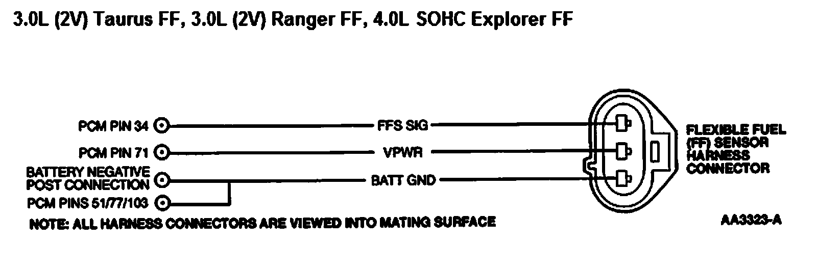 - Harness circuits: FF SIG, Vehicle Power (VPWR) and Power Ground (PWR GND).