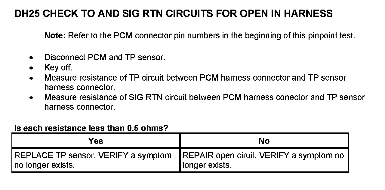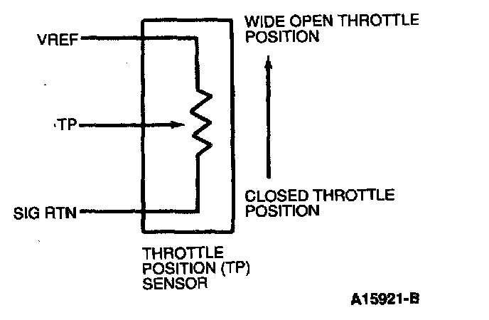 - Harness Circuits: TP, SIG RTN, VREF, Vehicle Power (VPWR), Power Ground (PWR GND) Powertrain Control Module (PCM)