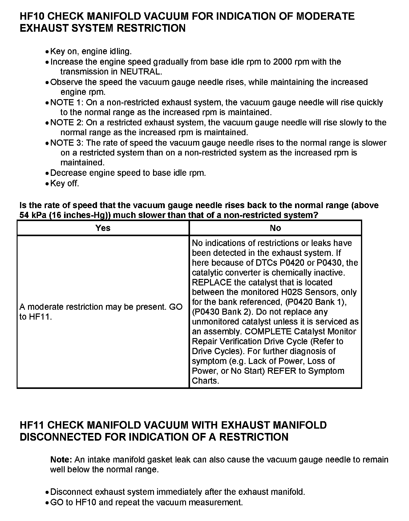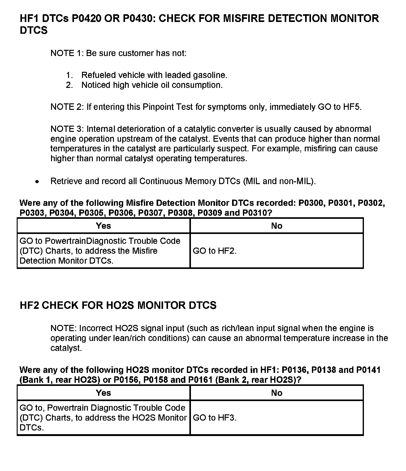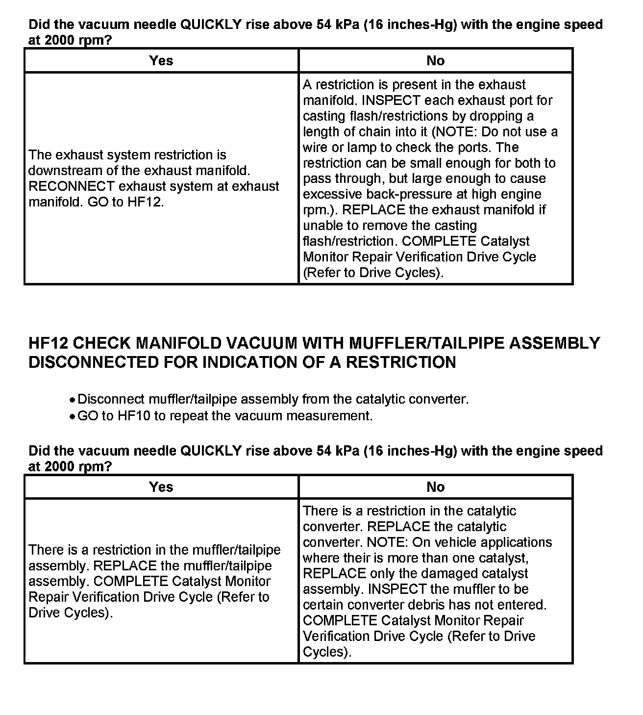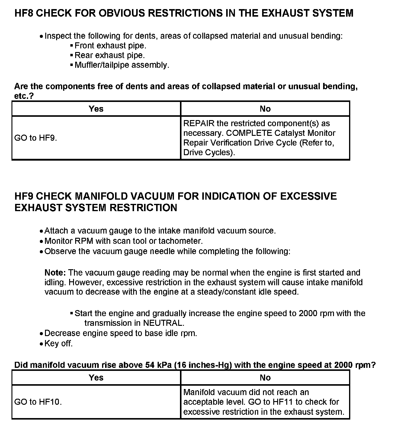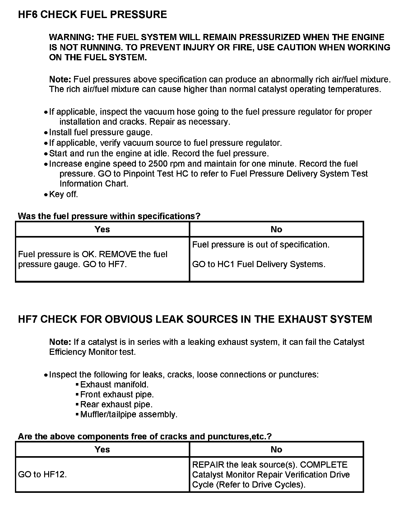 Tests HF: Catalyst Efficiency Monitor and Exhaust Systems