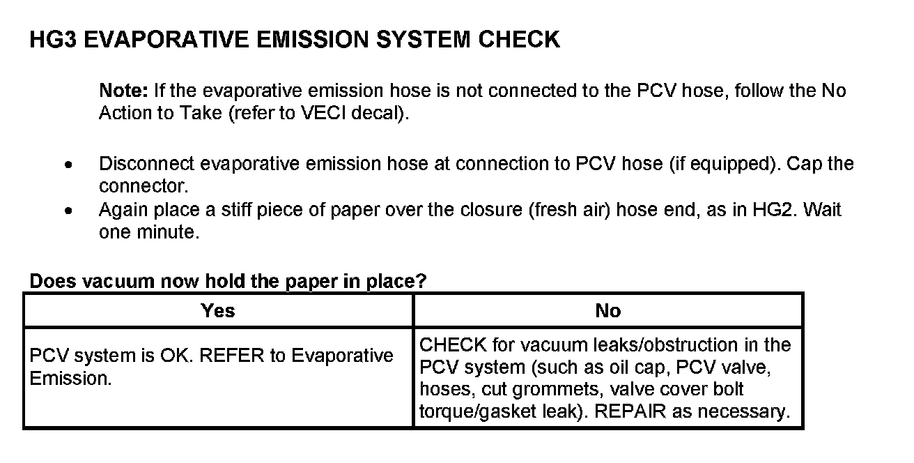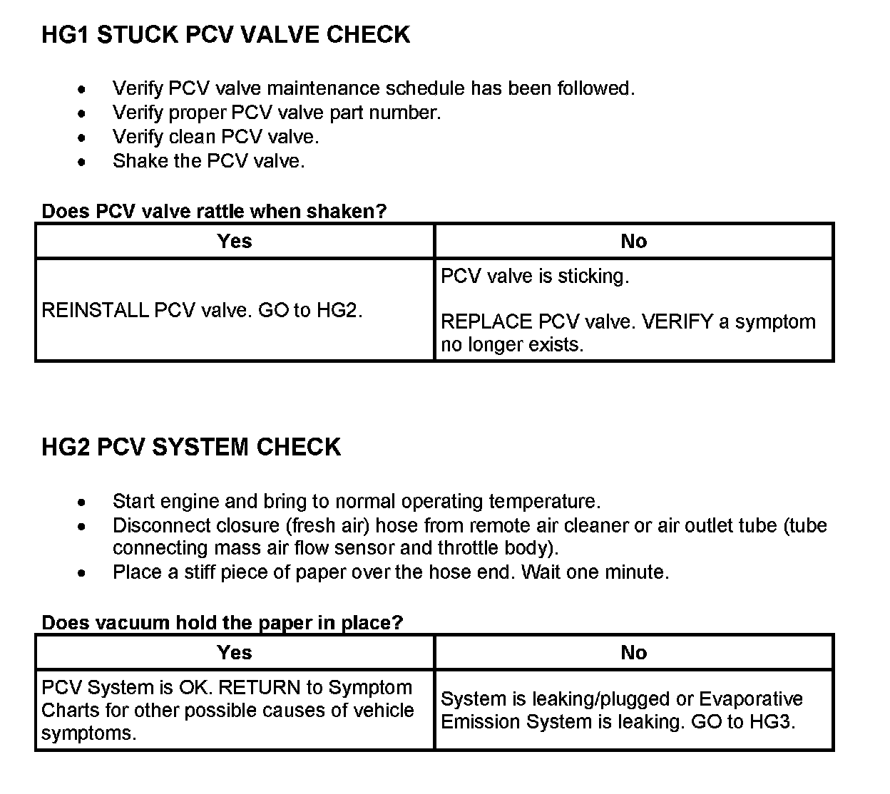 Tests HG: Positive Crankcase Ventilation (PCV) System