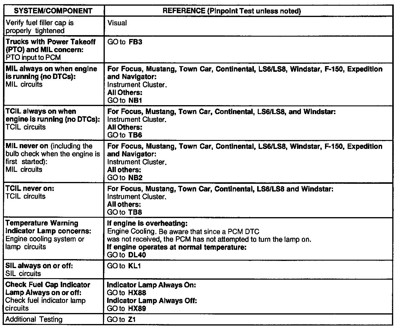 - If the symptom is both "MIL on" AND "exhaust emission test failure", GO directly to Chart 11.