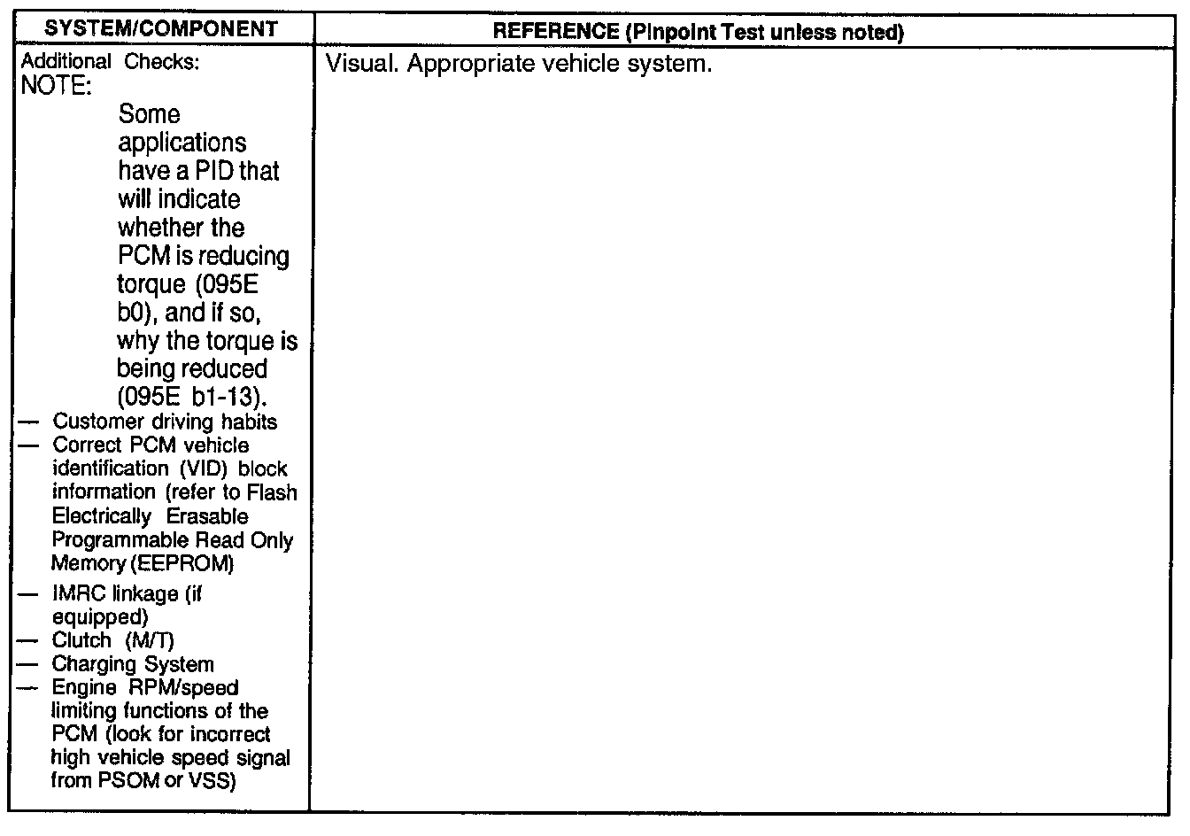 - Verify symptom is reported under normal driving conditions without excessive engine/vehicle load. Also, be aware of the engine rpm/speed limiting functions of the Powertrain Control Module (PCM).