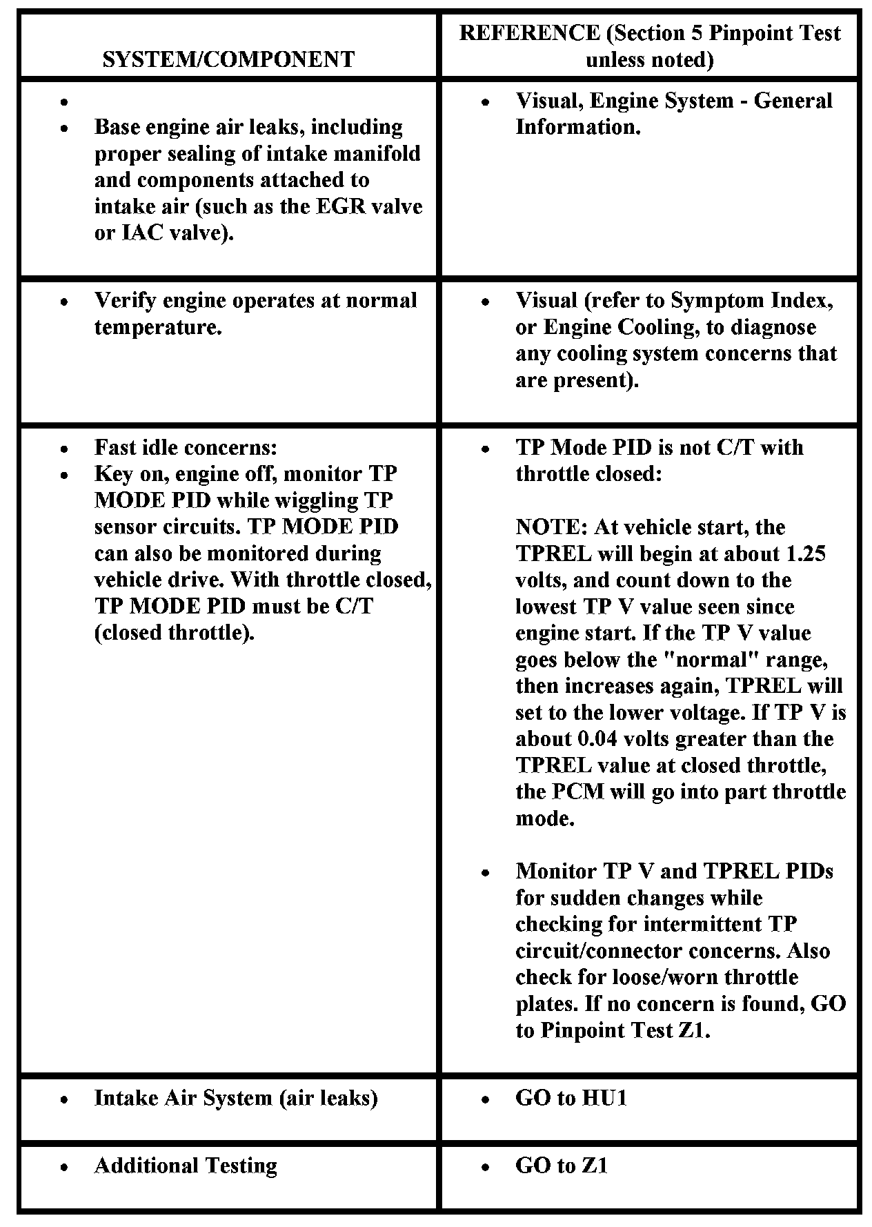 Additional Driveability Concerns: