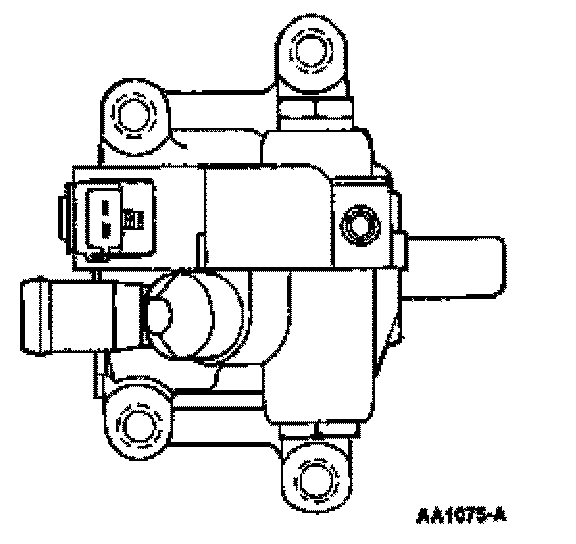The system consists of an engine-driven pump with an integral solenoid (Figure 47) on the pump that is triggered by the powertrain control module (PCM). Fan speed is controlled by adjusting current to the solenoid, which then changes the fluid flow to the hydraulic motor. More current means the solenoid opens up, allowing higher pressure to increase the fan speed. The fan always turns due to solenoid current leakage, even in cold engine cases. The motor is driven by the pump. It contains a shaft on which the fan mounts. The motor also contains quick connect fittings for the high pressure lines. The cooler is similar to the power steering cooler (same purpose and function, to keep the fluid cool).