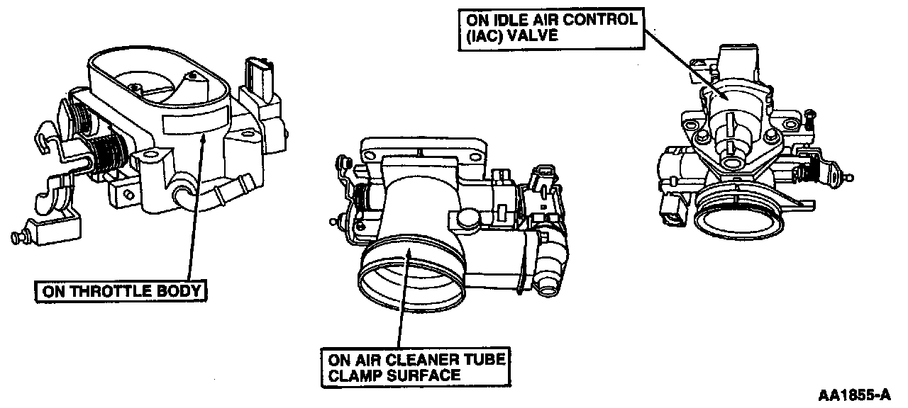 1. Idle Air Control (IAC) valve assembly mounted directly to the throttle body assembly (some vehicles).