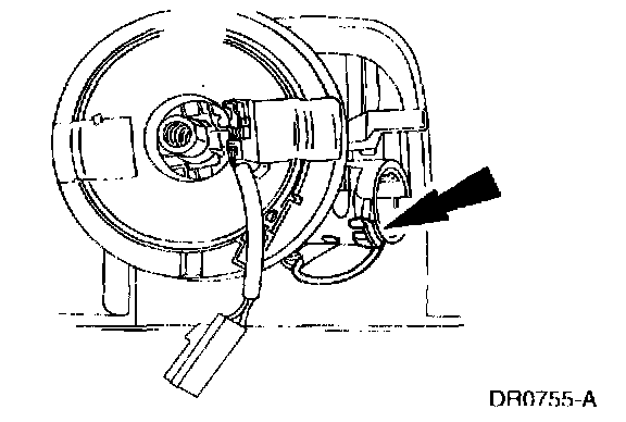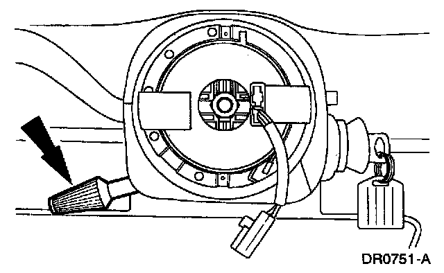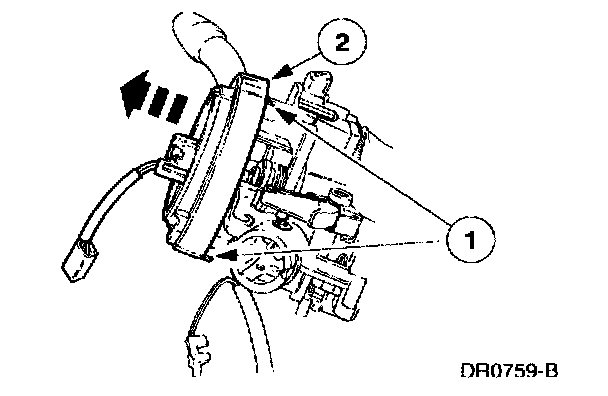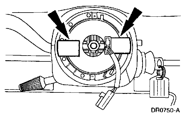 2 Separate the air bag sliding contact pigtail from the two clips retaining it to the steering column.