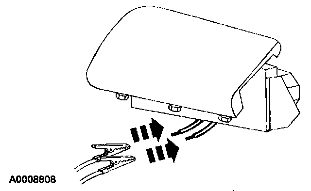 6. Deploy the air bag module by touching the other ends of the two wires to the terminals of a 12-volt battery.
