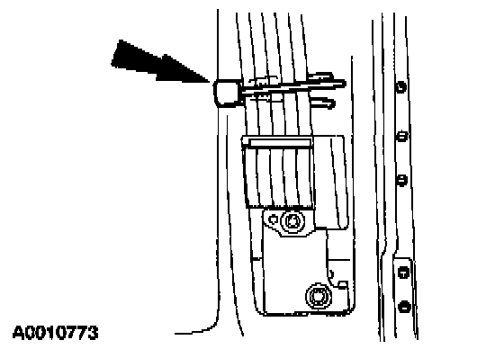 CAUTION: Do not remove the shipping clip until the safety belt guide is secured in position. Allowing the safety belt to be retracted further into the safety belt retractor may cause the safety belt retractor to lock and not release the safety belt.