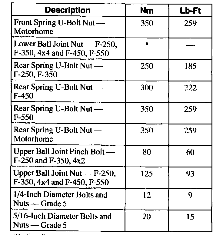 Torque Specifications