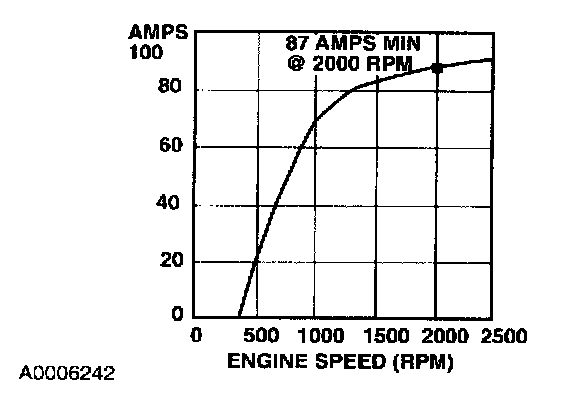 4. With the engine running at 2,000 rpm, adjust the tester load bank to determine the output of the generator. Generator output should be at least 87 amps.