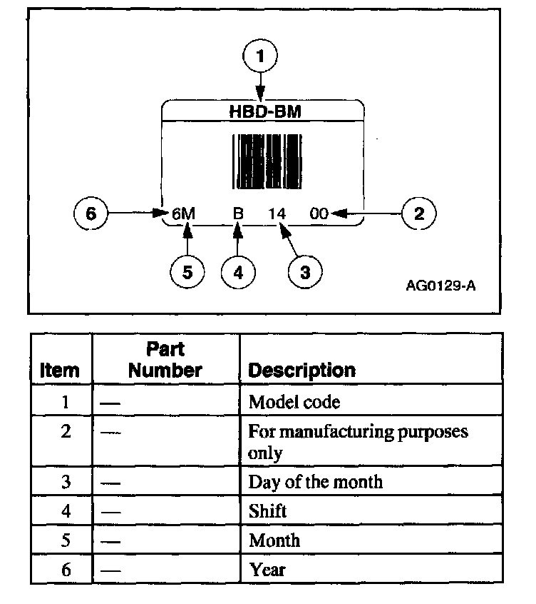 CAUTION: Always use the ID code when ordering service parts.