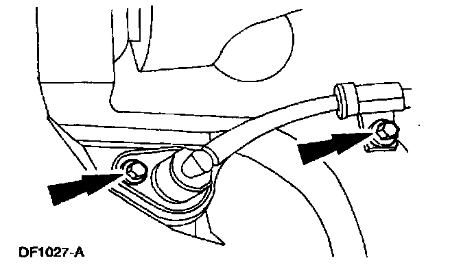 13. If equipped, install the front disc brake ABS sensor, retainer bolt and the ABS sensor harness bracket bolt.