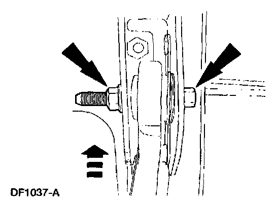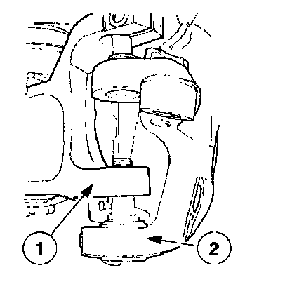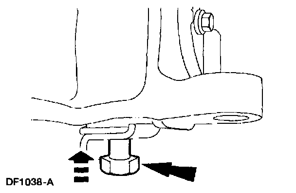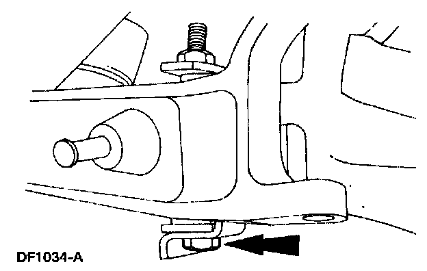 16. Note: In order to obtain clearance for the pivot bolt removal when servicing the RH front axle, it may be necessary to raise the side of the vehicle to relieve the weight on the suspension.